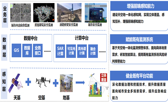 房屋健康監測系統建立了天-空-地一體化監測預警體系,天上通過衛星遙感宏觀掃描,獲取房屋整體分布等信息;空中利用無人機搭載設備,近距離巡查屋頂破損等問題;地面靠各類傳感器深入關鍵結構部位,實時采集物理參數數據。實現“能監測、會預警、快處置”的分級分類治理,保障城市房屋安全。