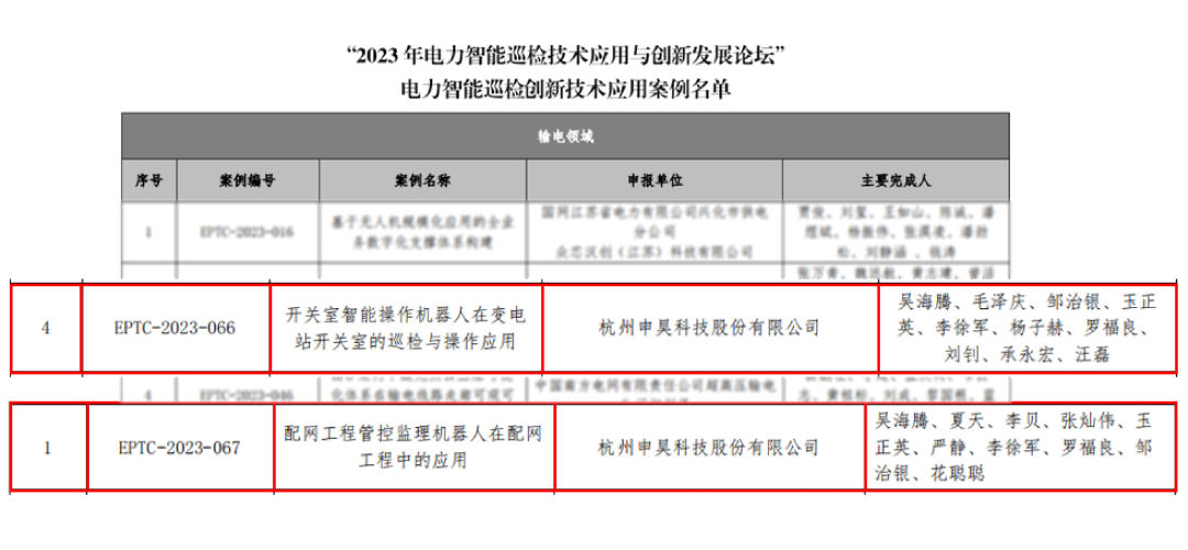 近日,在“2023年電力智能巡檢技術應用與創新發展論壇”上公布了2023年度電力智能巡檢技術應用案例遴選結果,其中杭州申昊科技股份有限公司斬獲卓越技術應用案例1項和創新技術應用案例2項。