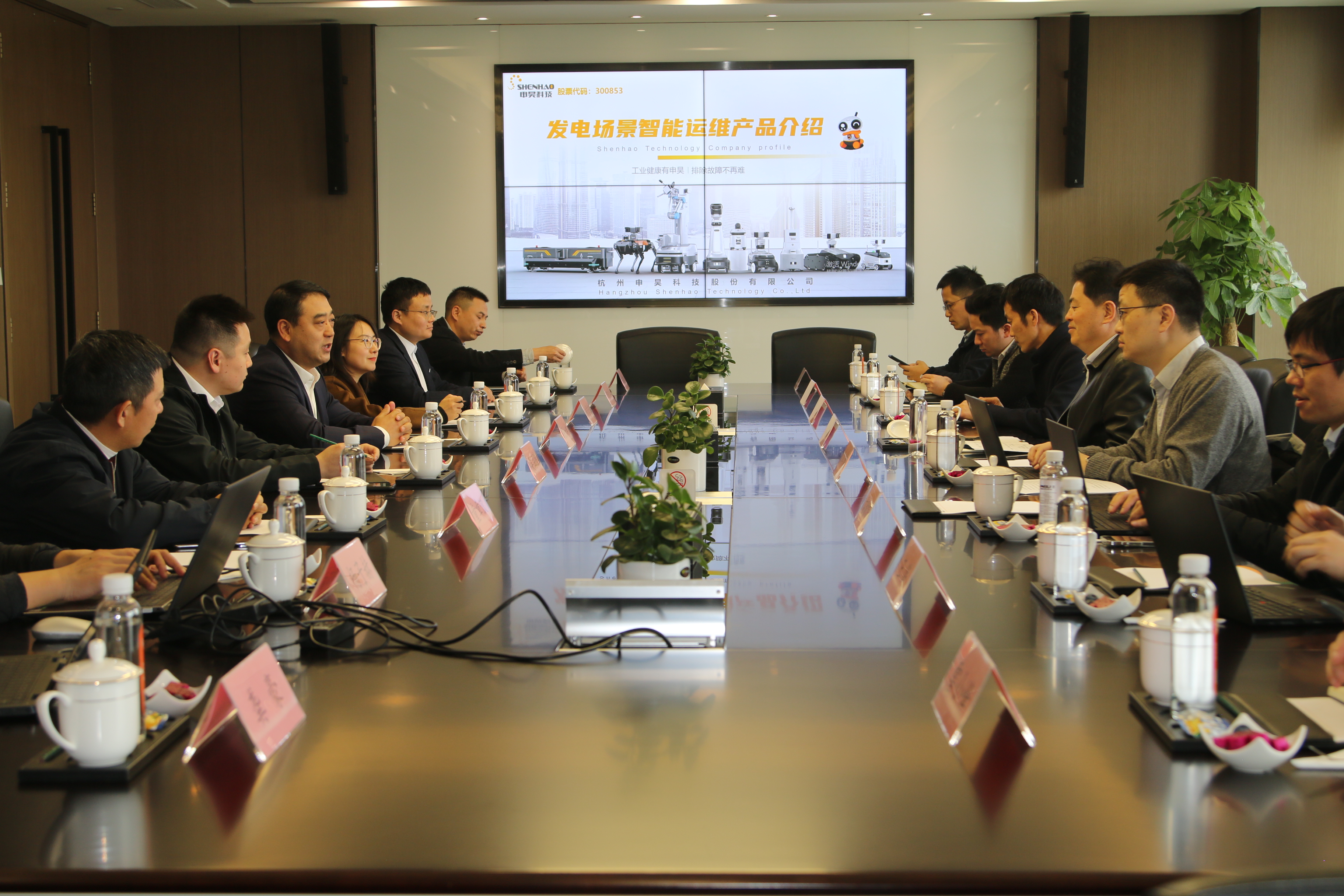 座談會上,陳如申董事長對浙能集團一行的到來表示熱烈歡迎。隨后申昊科技針對風電、光伏、水電、火電、升壓站巡檢場景行業相關產品及運用場景進行了匯報。雙方領導就人工智能應用場景、巡檢技術等進行了深度的互動交流。