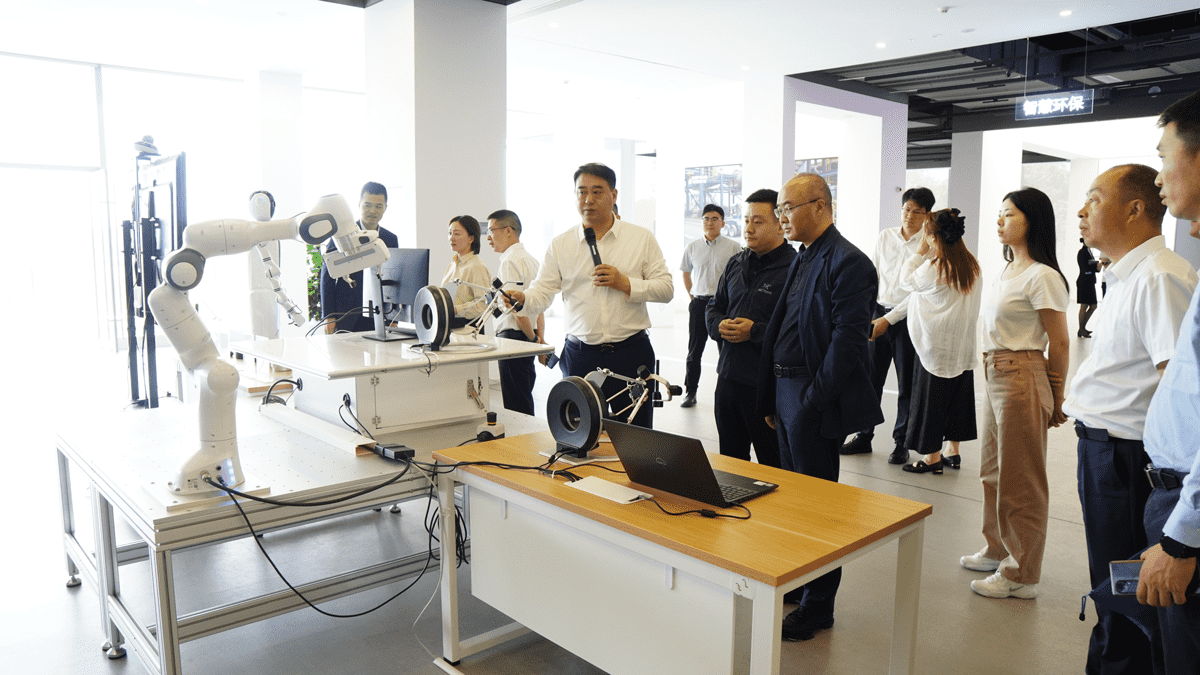 石繼東一行參觀了申昊科技產品試驗基地,實地考察、了解申昊科技智能運維機器人重點實驗室、軌道交通智能運維技術與裝備重點企業研究院等科研平臺情況,重點聽取申昊科技就智能機器人及智能監測控制設備產品在軌道交通領域的應用成果介紹。