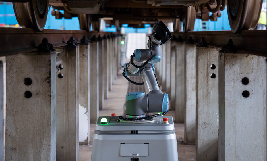 列車車底檢測機器人采用輪式運動平臺組合機械臂、視覺系統的方式,運行于列車檢修地溝中,代替人工完成列車車底、車側外觀的檢測任務,解決傳統人工檢測遇到的現場環境艱苦、勞動強度大、受人員主觀因素影響等問題,從而降低檢修人員工作強度、提升檢修質量,及時全面消除列車運行安全隱患。
